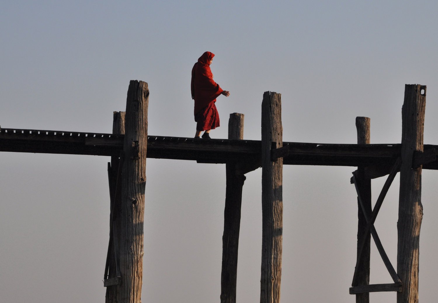 Monk, early morning, U-Bein Bridge